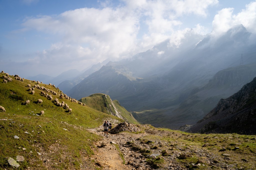 We woke up to a clear and chilly morning and were well on our way before 8 AM. We climbed the first four miles up to 8000 feet, passing a herd of sheep, a marmot, hikers and endless mountains.