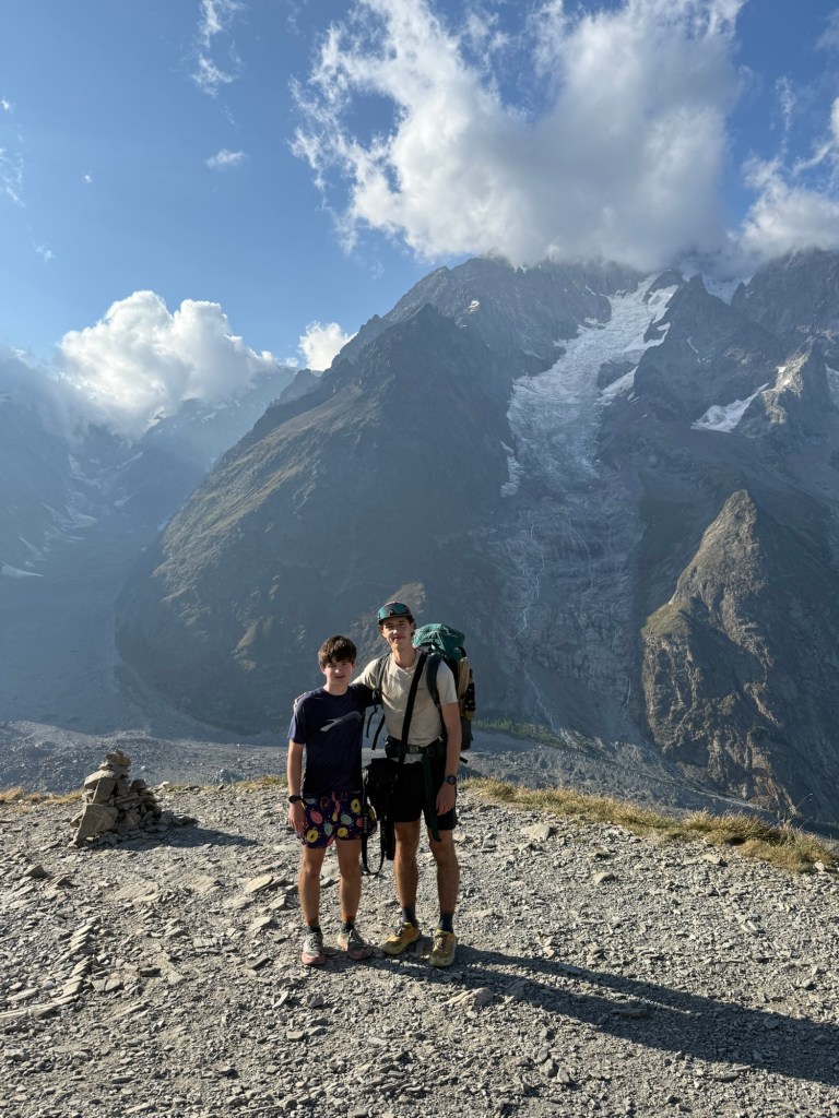 We ate pesto and cheese sandwiches at the refuge before traversing parallel to the Mont Blanc massif. Across the valley, glaciers flowed and bare glacial moraines left us imagining what these ice flows looked like 100 years ago. When we got to the turnoff to our closer campsite, Luke told me “we can’t stop walking at 1 PM, we have all day.” My blisters were growing and my energy was low, but Luke was persistent so we continued. I later realized that Luke’s only other backpacking experience was trying to set the U18 record on the Long Trail, a very different type of backpacking trip. His record setting mindset still lingered and clashed a bit with my “walk and smell the flowers” way of hiking which was the root of this idealistic problem.