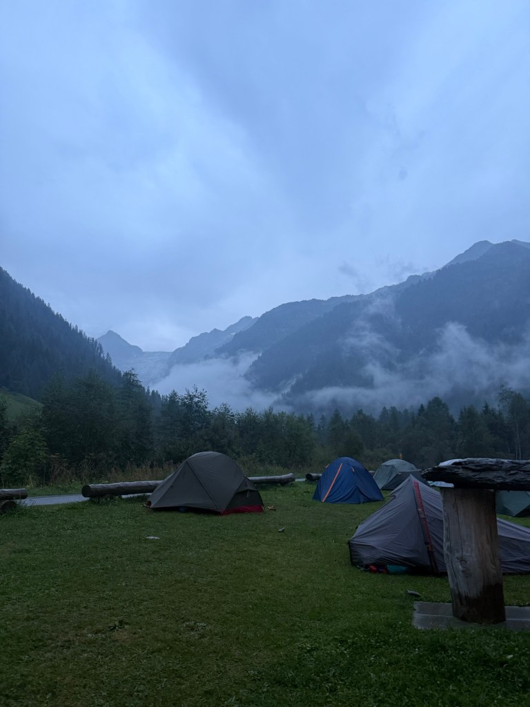 I trusted Luke when I asked him what to do about my blisters. He is an accomplished long distance runner after all with a 2:48 marathon at 16 and the U18 record for the first half of the long trail (he got injured) so must have some experience with blisters. However, his advice was to tough it out because “they just hurt.” We crossed into Switzerland and were met with a six mile descent (four miles longer than expected.) A mile in, my blisters burst and I hobbled the next five miles walking primarily on my heels and big toes, giving my pinky toes a break. At 9 PM, Luke walked and I limped into the small Swiss town of La Fouly and was met by a friendly French man, around our age. He asked us about our day and helped us get situated as the reception at the campsite was closed. As I was setting up the tent, a confused looking Italian man came over to us. I looked at Luke, worried we were in trouble for not paying for the campsite yet, but he was simply looking for someone to help him set up his tent.