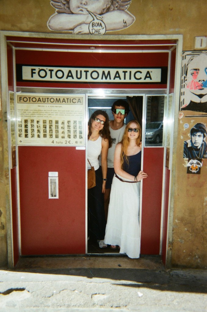 My deep hostel sleep was interrupted by someone’s alarm at 5am. I slept a bit more and then went for a nice run around Florence before breakfast. I got a nice view of the city from a nearby hill. Then, breakfast with Willa and Anika. I had old rice and a can of corn inside four tortillas and a mushy banana. Breakfast of champions. We spent a while journaling and then left the hostel to explore. We passed by an old photo booth while walking and paid €2. They turned out so well and it was fun (see photo later of my journal.)