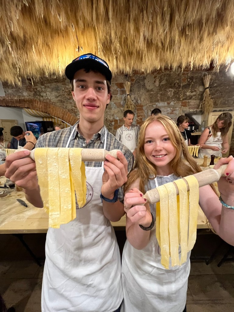 I arrived in the outskirts of Florence and was too tired to figure out which train to take to get downtown, so I got on the first one and fortunately it was right! I then took a bus, walked a few blocks, and arrived 15 minutes early, after 15 hours of nonstop travel. Willa and Anika then walked in and it was so strange. I hadn’t seen them in over a year and now we were making pasta in Florence Italy?? Life’s crazy like that. We made three types of pasta: tortellini, ravioli, and pappardelle, each with their own sauce. The tortellini and ravioli were filled with ricotta and a touch of lemon zest. We talked and ate the wonderful pasta until we could eat no more.