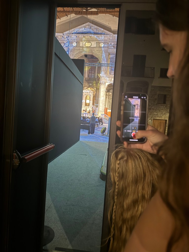 After a few minutes, the guy came back and told us we could go in!! He must have seen how much we wanted to hear Vivaldi and felt bad. The concert hall was beauty and had projections of paintings on the walls. We listened in awe of the music and disbelief of our accomplishments of getting in. We heard the last hour and, although I was falling asleep, I was so happy to be there. We then got dinner at a nice Italian place and I got lasagna.