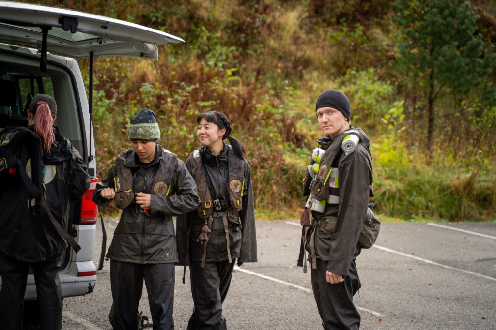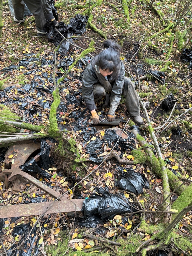 On October 8th, we had two groups moving down river and one moving up. I was cleaning with Tyra and we found some beautiful moss forest with a swing and lovely mushrooms. To preserve the endangered river mussels in Haukåselva, we avoided walking in the river and had to get creative on how to reach pieces in the middle.