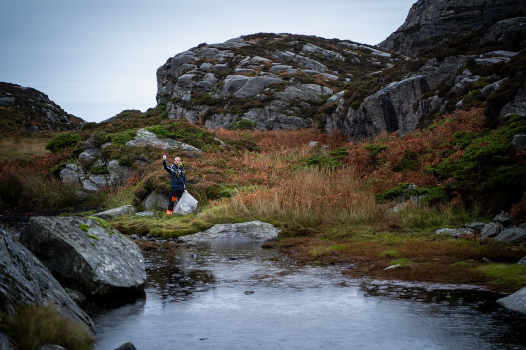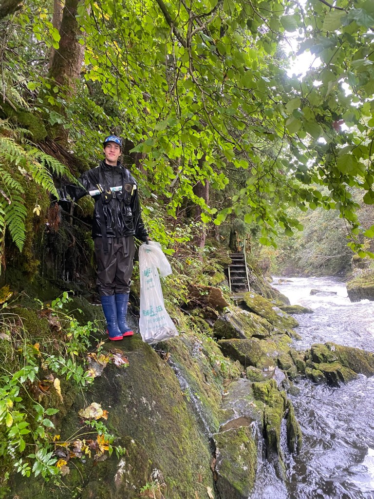 Our first objective was the clean the 7km Arna River. I felt prepared with my welly boots, rain gear, and inflatable life preserver. Unfortunately, I only stayed dry a matter of minutes as my first step in the river was thigh deep and cold water filled my boots. We split up into two groups and moved slowly. The water was deep and the banks were thick with vegetation which made retrieving each piece of trash a serious endeavor. We cleaned 1.5 kilometers in almost six hours. The work was new to us and we began to build strategies. We left piles of our collected trash (called depots) on the side of the road to be picked up at a later time. We were quite surprised when we heard Florian say on the walkie talkies “Hi Kaja! I found a gun.” Fortunately it was only a toy and we didn’t need to notify the police, though it looked quite real. By day two, we were already significantly more efficient and were able to power through to the end of the Arna River. Tyra and I took the west bank and were surprised by a series of boardwalks along the river’s edge. We walked along suspended above raging waterfalls without seeing a piece of trash for some time. The boardwalks were made for fly fishing and helped us immensely.