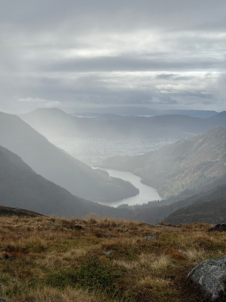 One lovely adventure was my traverse between two mountains above Bergen. On the way into the city, the group dropped me off at the trailhead. I climbed through the deciduous forest and slowly the wind picked up, giving way to bare stone and heather. I summited Ulriken and then made my way along the Vidden ridge. The cool fall breeze became violent above tree-line and brought in waves of sleet freezing my exposed legs and ears. I continued along, gradually descending, with splendid views of Bergen and the Archipelago that we helped clean on my left and Indre Arne and grander mountains to my right. I passed through mythical pine forests before reaching Fløyen and descending into Bergen. The 13 mile trail run had 3000 feet of elevation gain and took me three hours.